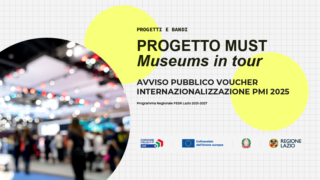 È con grande entusiasmo che annunciamo l’approvazione del progetto Museums in tour (MUST), finanziato grazie all’AVVISO PUBBLICO VOUCHER INTERNAZIONALIZZAZIONE PMI 2025 nell’ambito del Programma Regionale FESR Lazio 2021-2027.
